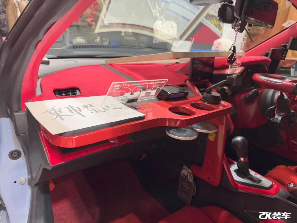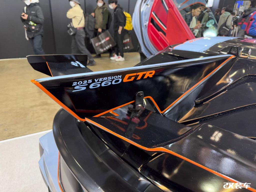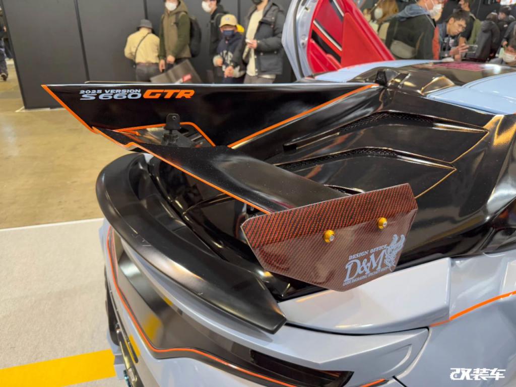 车尾方面更是精髓,除了拥有更加夸张的后包围之外,能看到大神还为这台 S660 安装了尺寸非常夸张的碳纤维尾翼,这时的姿态已经非常炸裂了。
