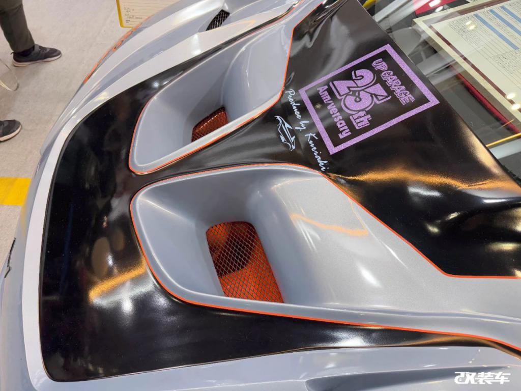 虽然改哥没有找到关于这台车的改装过程,但在东京改装展上看到实车还是觉得非常震撼的,能看到车主为其打造了全新样式的前脸,甚至灯组也尽可能还原出 Senna GTR 的样式,当然了,Senna 最经典的机盖设计也被这位大神还原出来。