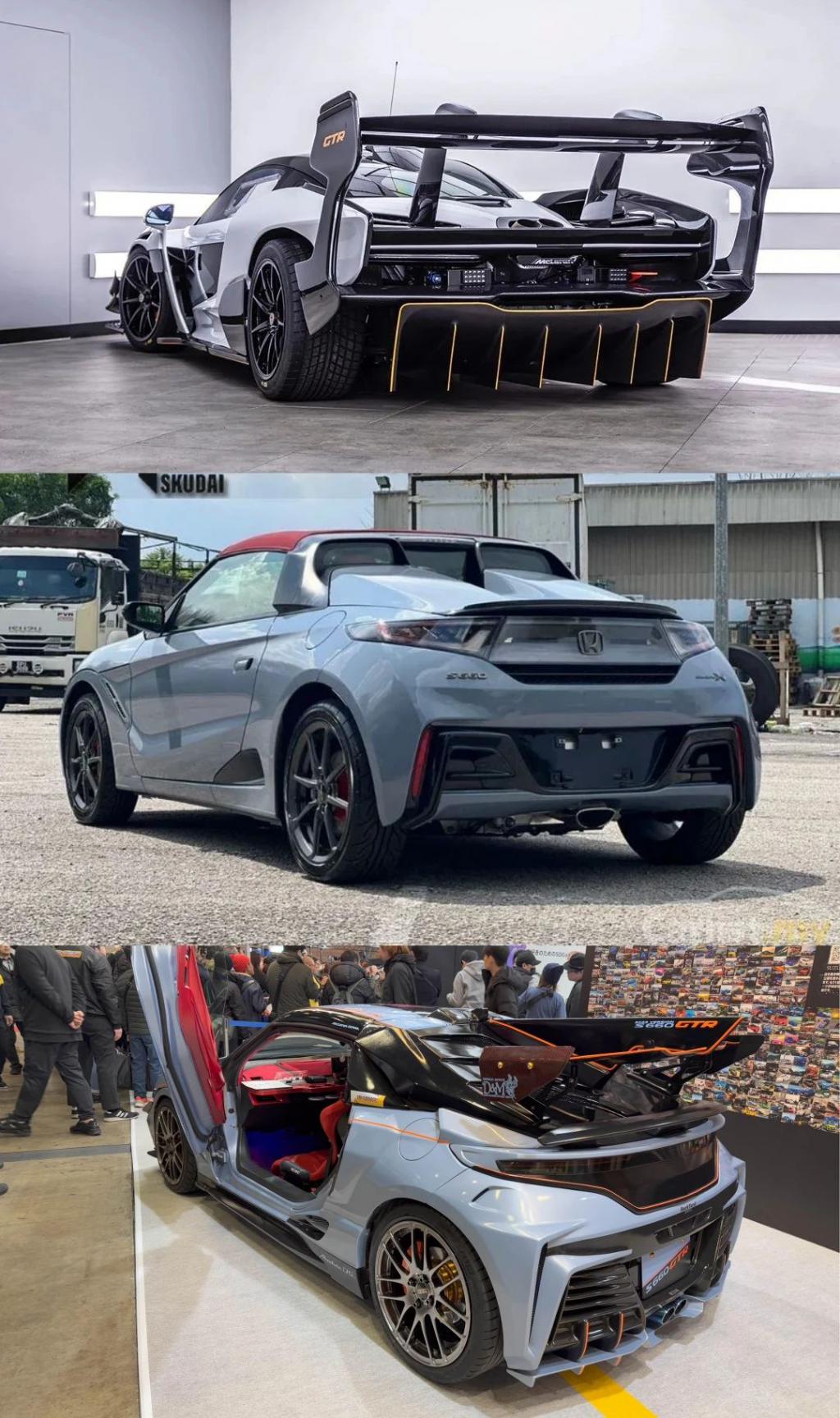 无独有偶,在东京改装展上还有另外一个魔改版本,就是将本田 S660 魔改成迈凯伦 Senna GTR 的样子,甚至连开门方式也还原得相当到位。